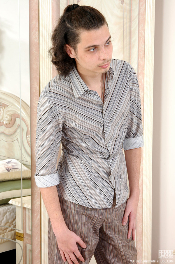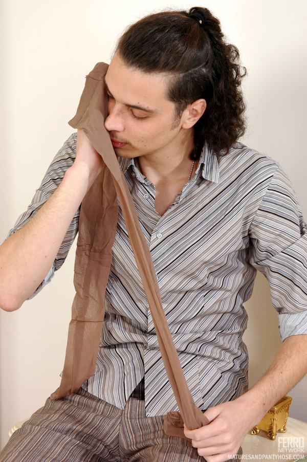 Busty mature housewife in soft tights making cock rock-hard for her pussy